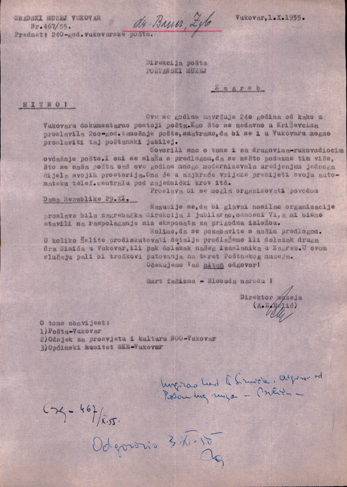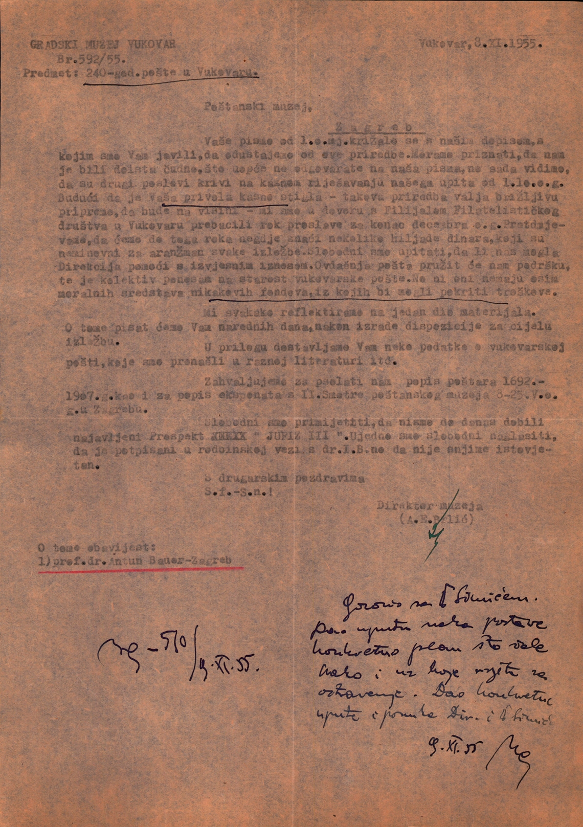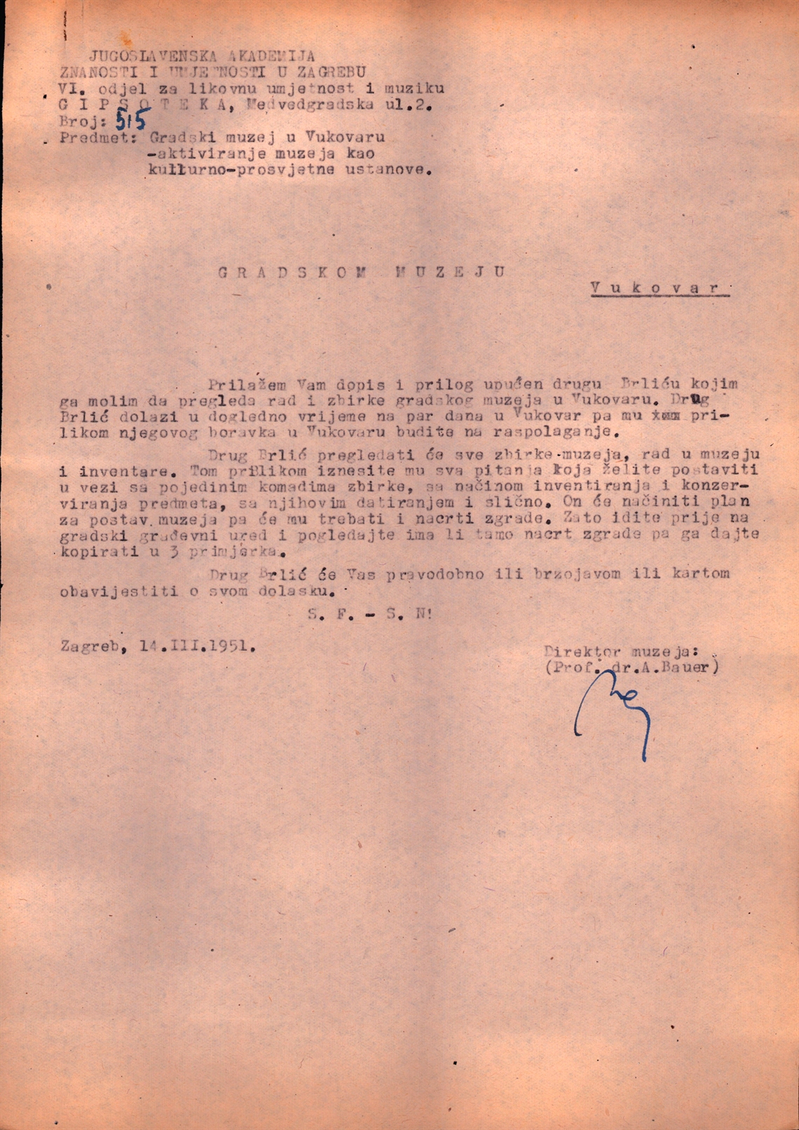 1951. A-5430 1951 Gradski muzej Vukovar (primatelj) Zagreb dopis osnivanje muzeja rad muzeja spis Brlić, Ante Eugen Gradski muzej Vukovar 1951. Vukovar Archive