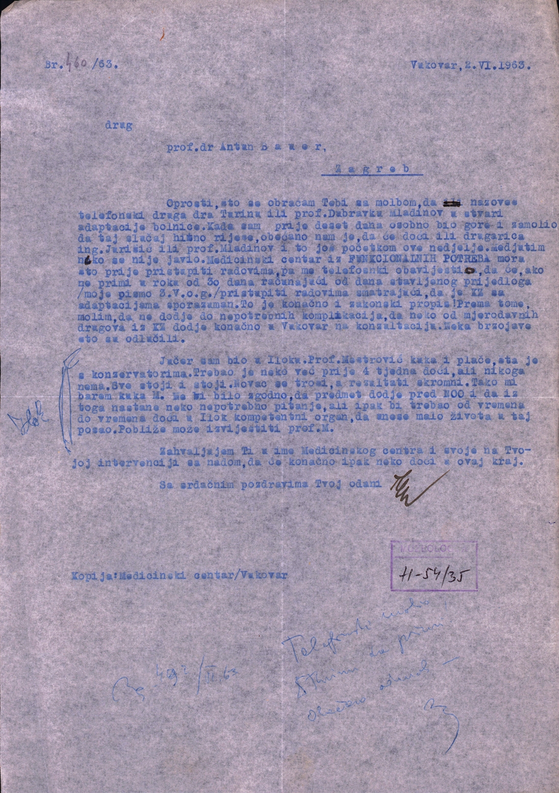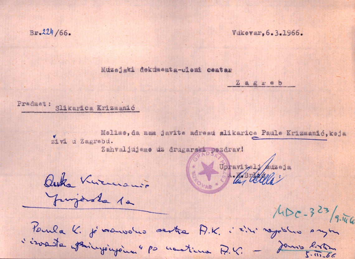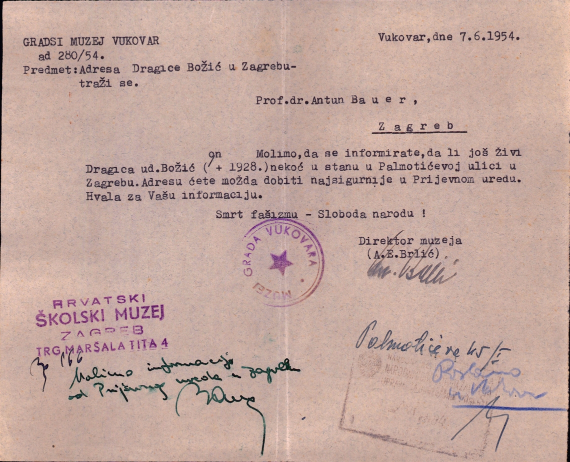 1951. A-5430 1951 Gradski muzej Vukovar (primatelj) Zagreb dopis osnivanje muzeja rad muzeja spis Brlić, Ante Eugen Gradski muzej Vukovar 1951. Vukovar Archive