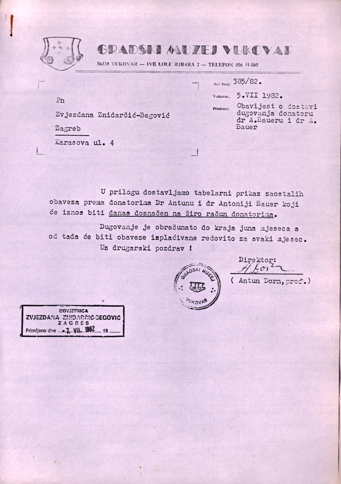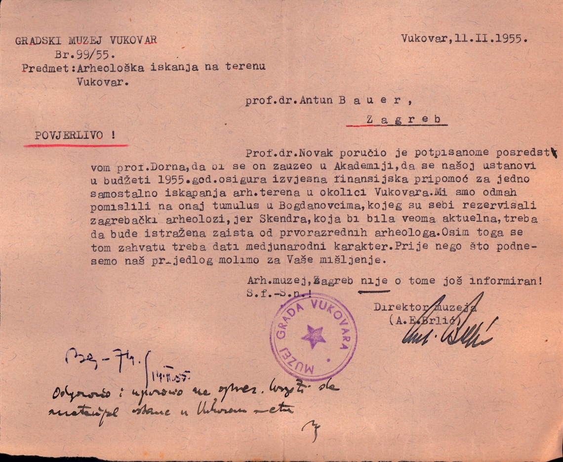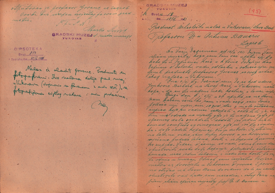 1951. A-4798 1951 Bauer, Antun (primatelj) Vukovar izvještaj Izvješća Gradski muzej Vukovar 1951. Lijeva Bara Vukovar Archive
