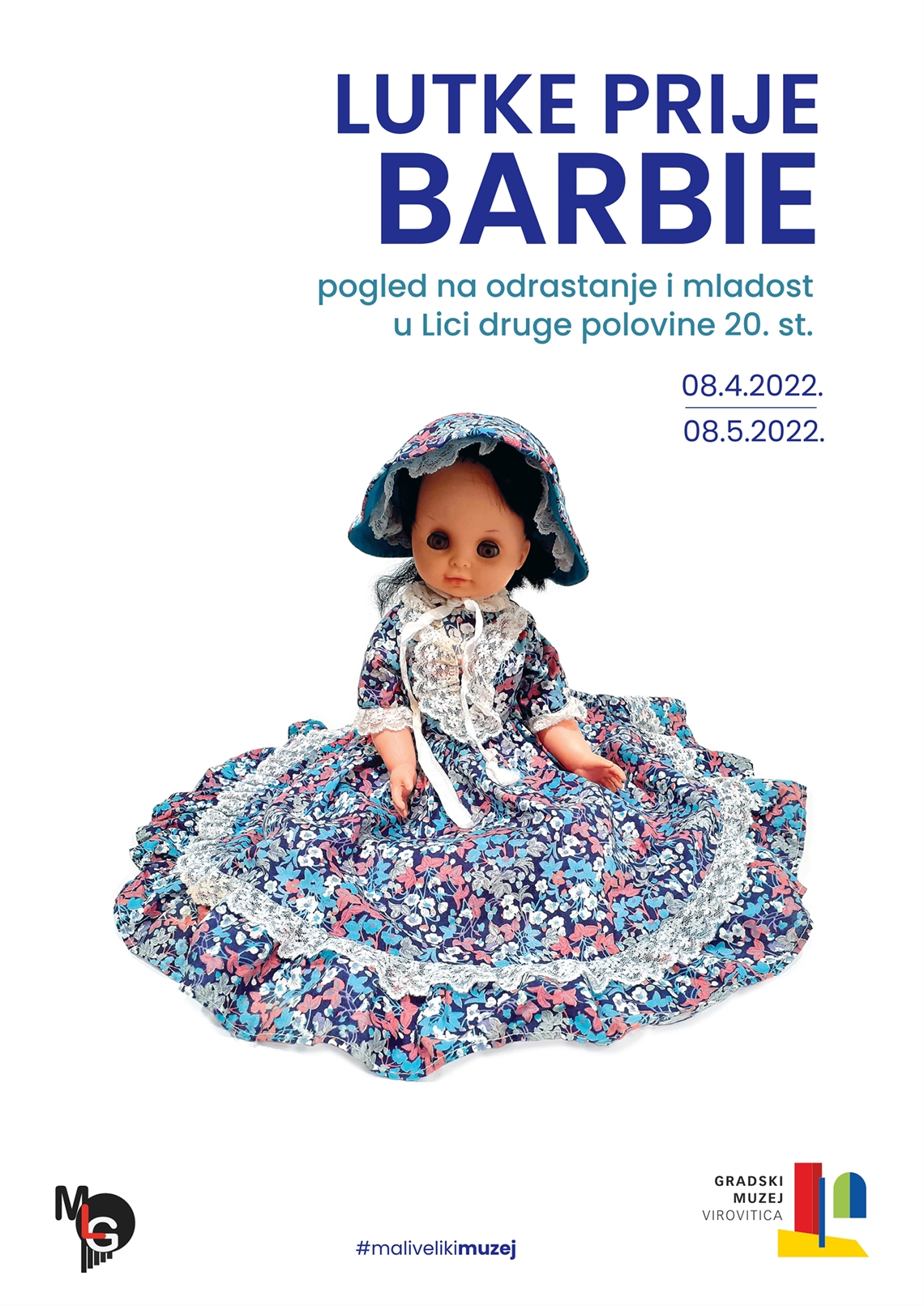Borbaš, Ivan (dizajner) Grafiti Becker d.o.o. (tisak) 2022. 2022 13756 papir cjelina: š = 50cm;v = 70cm Virovitica Gradski muzej Virovitica Lutke prije Barbie Lutke prije Barbie Pogled na odrastanje i mladost u Lici druge polovine 20. st. 08.4.2022. - 08.5.2022. digitalni tisak izložba plakat Zbirka muzejskih plakata Plakat za gostujuću izložbu Muzeja Like Gospić otvorenu u travnju 2022. godine u Gradskome muzeju Virovitica.